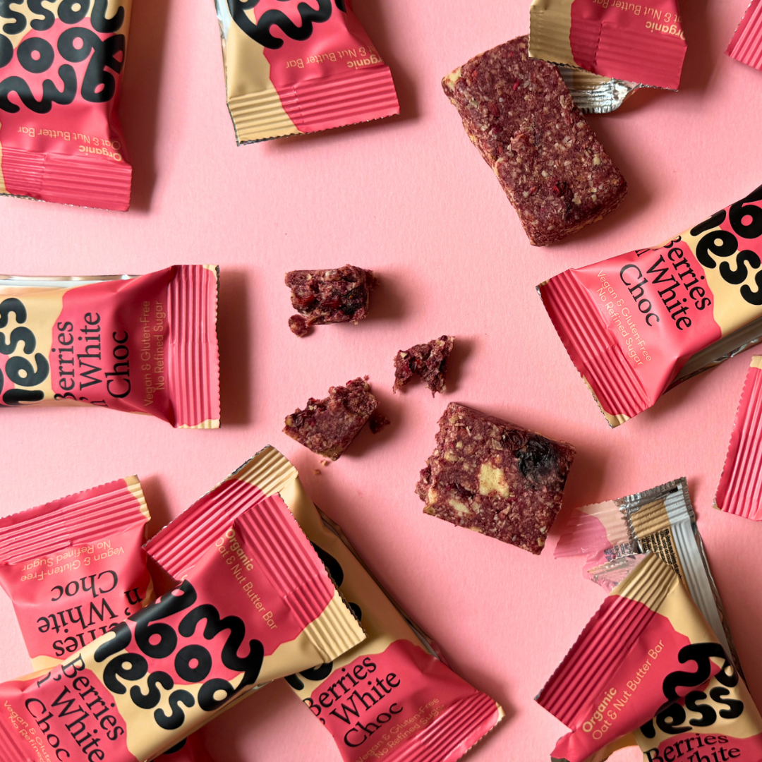 My Goodness Berries ’n White Choc delivers that sweet-and-fruity dessert vibe, but in a cleaner, plant-based version. With tangy berry pieces, velvety nut butter, and smooth vegan white chocolate, this organic bar balances freshness and sweetness in every bite.